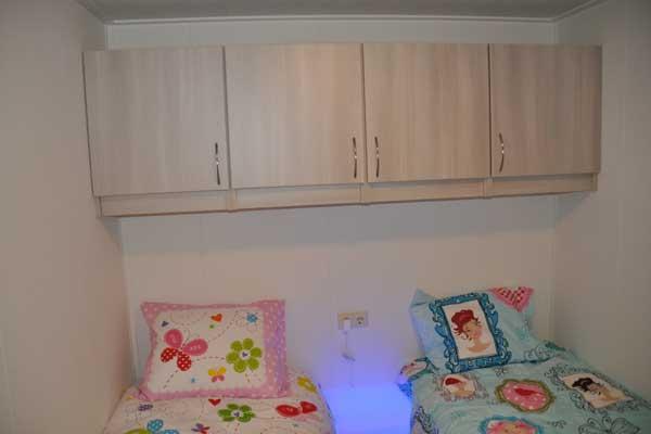 mit 2 Einzelbetten und Schränken; 1 Fenster Dreh/Kipp mit Lüfter; 1 Doppelsteckdose; Deckenleuchte.